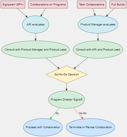 - The designated evaluator (ARI or Product Manager) conducts the evaluation based on the specific collaboration type and evaluation framework